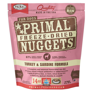 PRIMAL DOG FREEZE-DRIED NUGGET TURKEY & SARDINE 14OZ