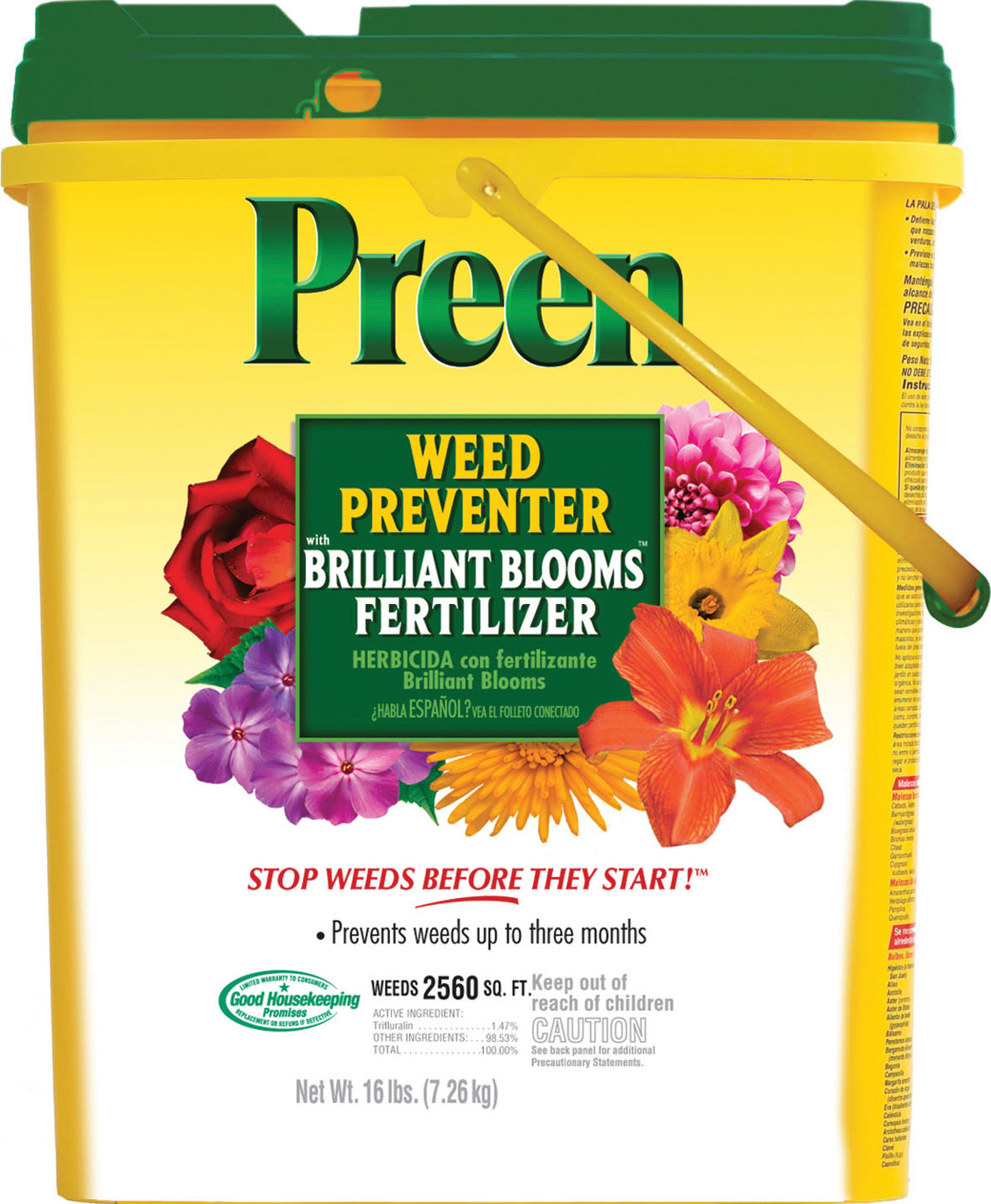 - One application feeds your plants and prevents weeds for up to three months