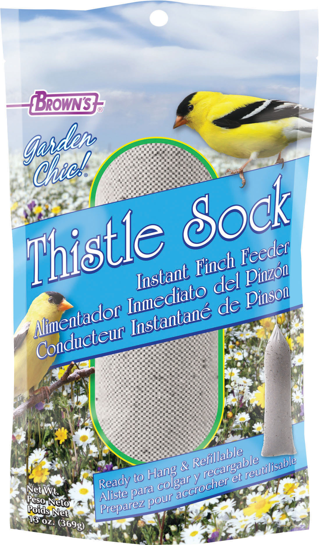 - Mesh thistle sock is filled with 13 ounces of nyjer seed that finches cannot resist.