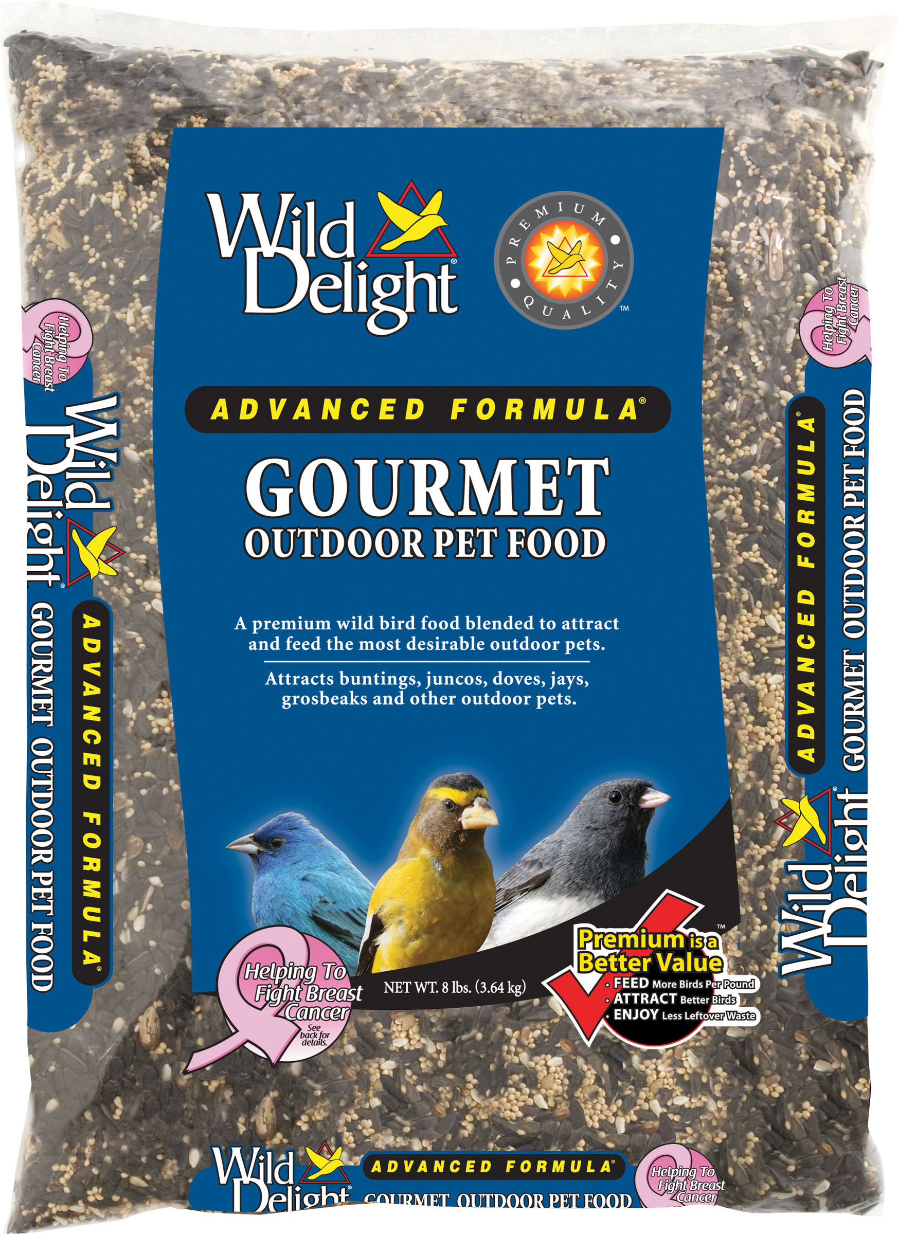 - Wild delight advanced formula gourmet outdoor pet food attracts buntings juncos doves jays grosbeaks and more.