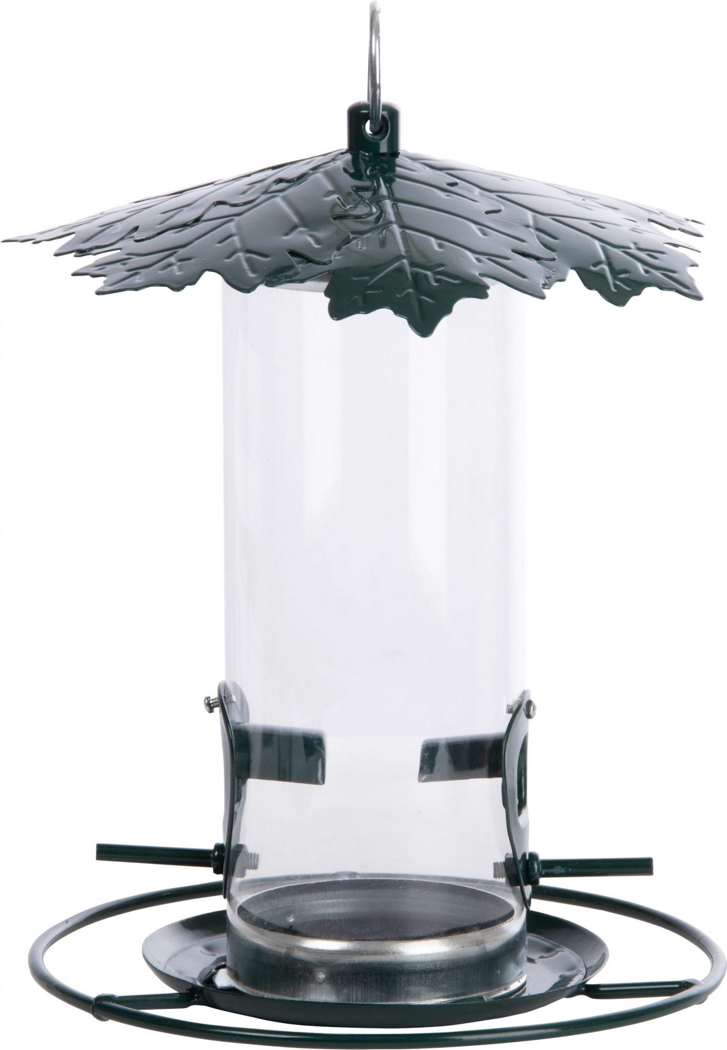 - This silo feeder with leaf roof protects the bird food against the weather.
