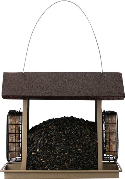 - 8.4 lb. seed capacity; 2 easy to open suet cake holders