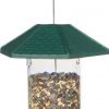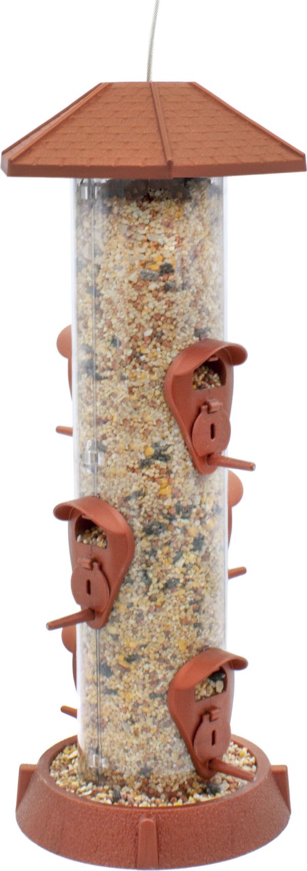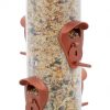 - The six copper-colored feeding stations have a hinged-port that flip up to feed thistle or flip down to feed wild bird seed