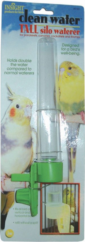 - One-size-fits-all plastic holder hangs easily from any horizontal cage wire.