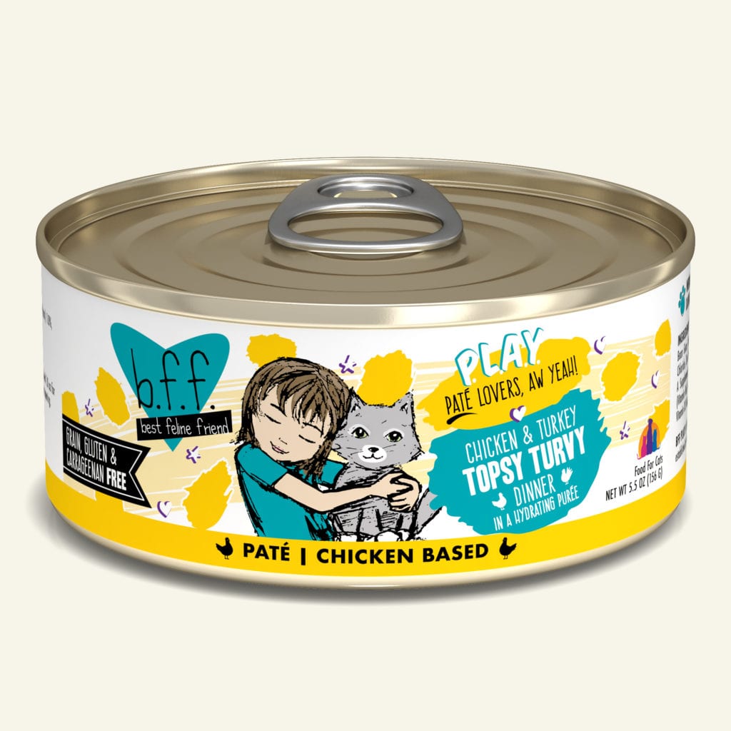 Your kitty will go topsy turvy over this delicious dinner! The puréed chicken and turkey in this hydrating paté will result in your frisky feline meowing for more!