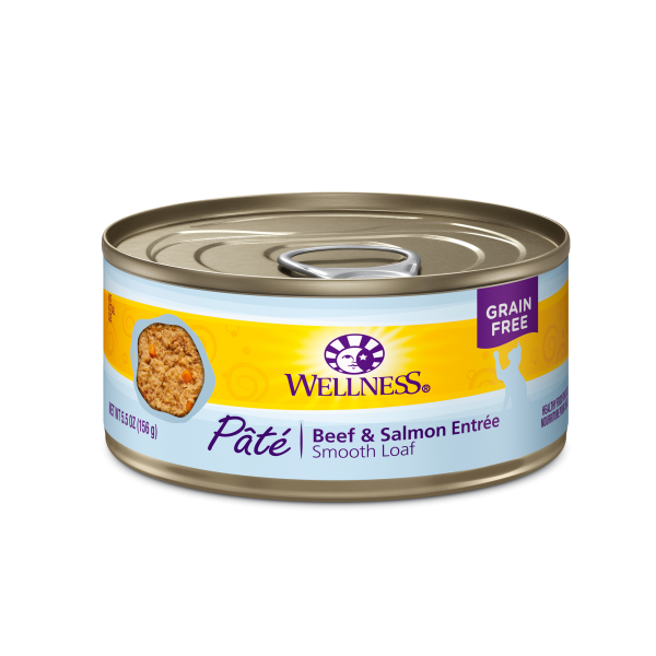 Wellness® Paté Beef & Salmon Entrée Cat Food is formulated to meet the nutritional levels established by the AAFCO Cat Food Nutrient Profiles for growth and maintenance.