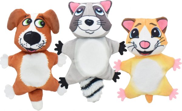 - Comes in puppy raccoon and hamster