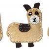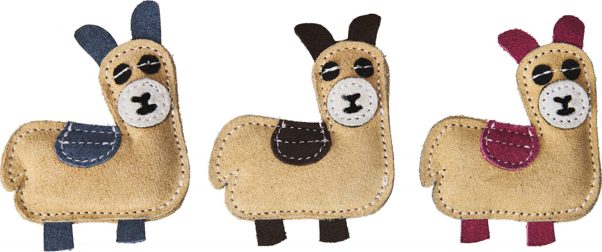 - Crafted with real durable tan leather accented in vibrant blues pinks and greens each toy is as eye-catching as it is toug