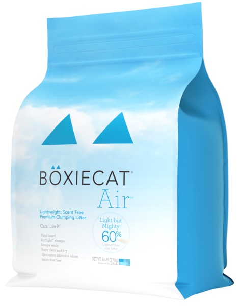 Boxiecat Air™ litter is light on what you don’t want but mighty on what you need because we believe you should experience lightweight litter without compromising on performance. AirTight™ clumps lock in odors, scoop easily, and don’t crumble. Enjoy a super clean litter box while saying goodbye to weight, odors, and dust. Boxiecat Air™ is plant based, renewable, biodegradable, sustainable, and USA sourced.
