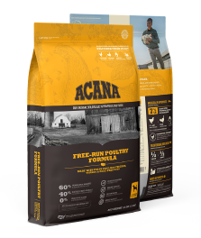 Based on this biological fact, and to produce a nutritional analysis that mirrors the diet Mother Nature would provide for your dog, ACANA Free-Run Poultry is rich in nourishing protein and fat, while excluding grains and gluten, and long lists of synthetic ingredients found in some dog foods.