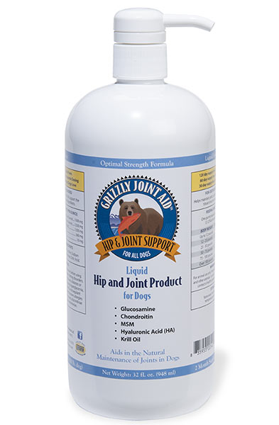 Grizzly Joint Aid comes in either liquid or mini pellet form, both with the same key active ingredients… choose the formula that’s easiest for you to use and/or the one that your pet prefers.