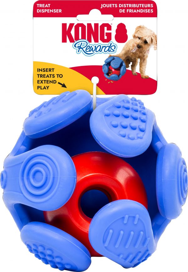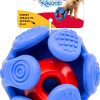 - Nested treat dispenser rolls unpredictably to disperse treats