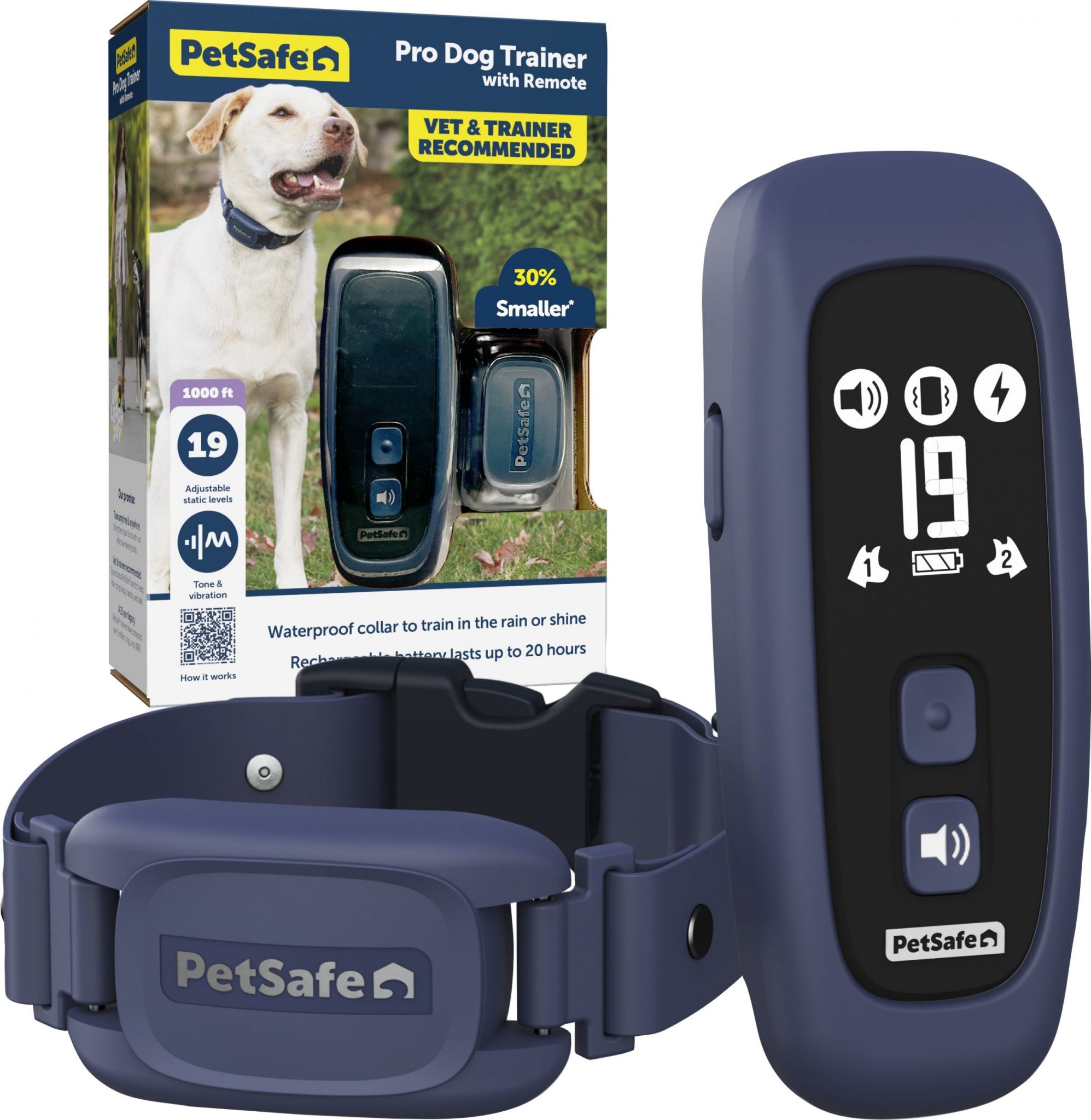 - Choose between audible tone vibration and 19 levels of static for comfortable training