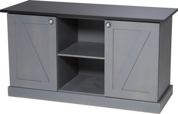 - Features cabinet with stainless steel knobs