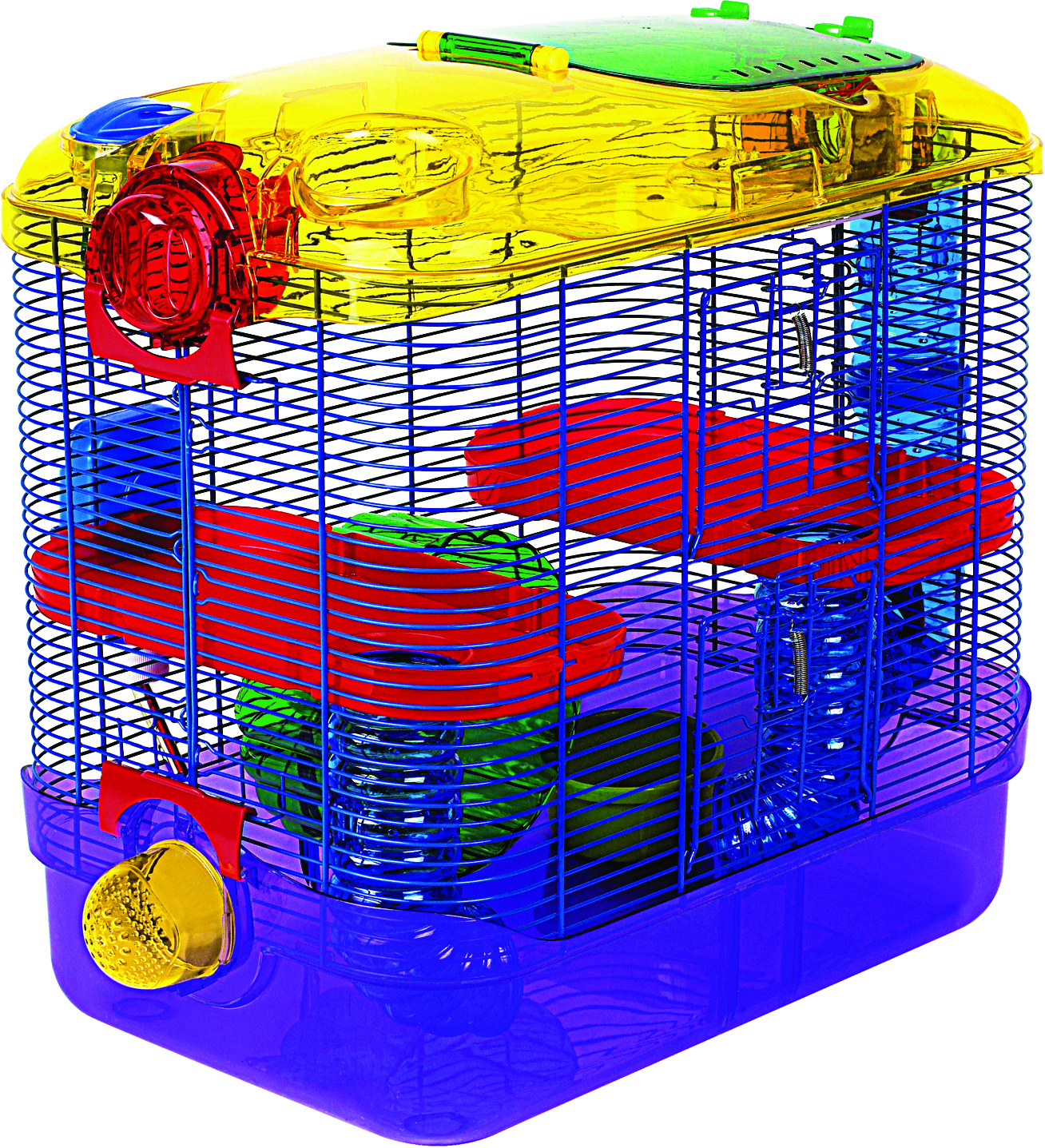 - Includes a food dish water bottle and exercise wheel. Ideal for mice hamsters and gerbils.