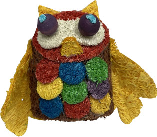 - This toy is a fun shaped character made from loofah and uses plant based dyes for bright colors
