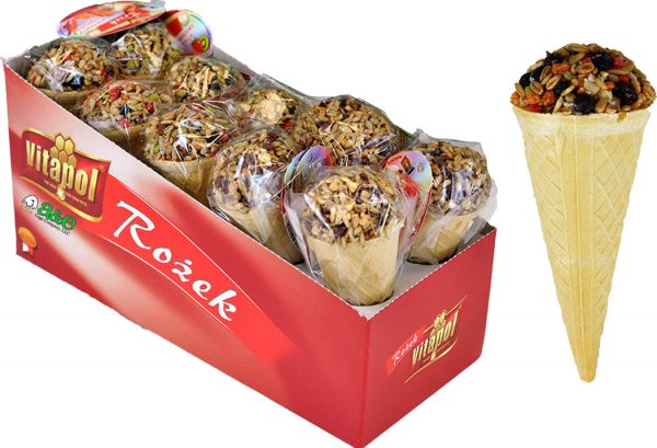- This display of 12 cones come with 4-Vegetable 4-Fruit and 4-Nut cones that are individually wrapped with UPC.